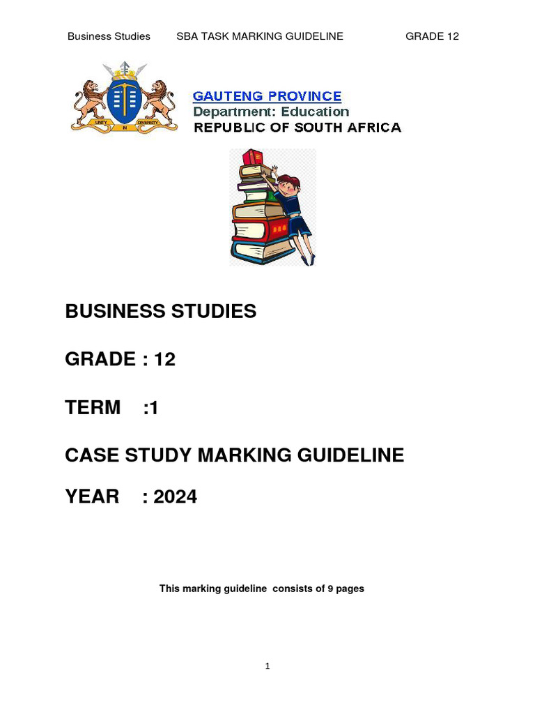 2024 Business Studies Grade 12 Term 1 Sba Task Marking Guideline