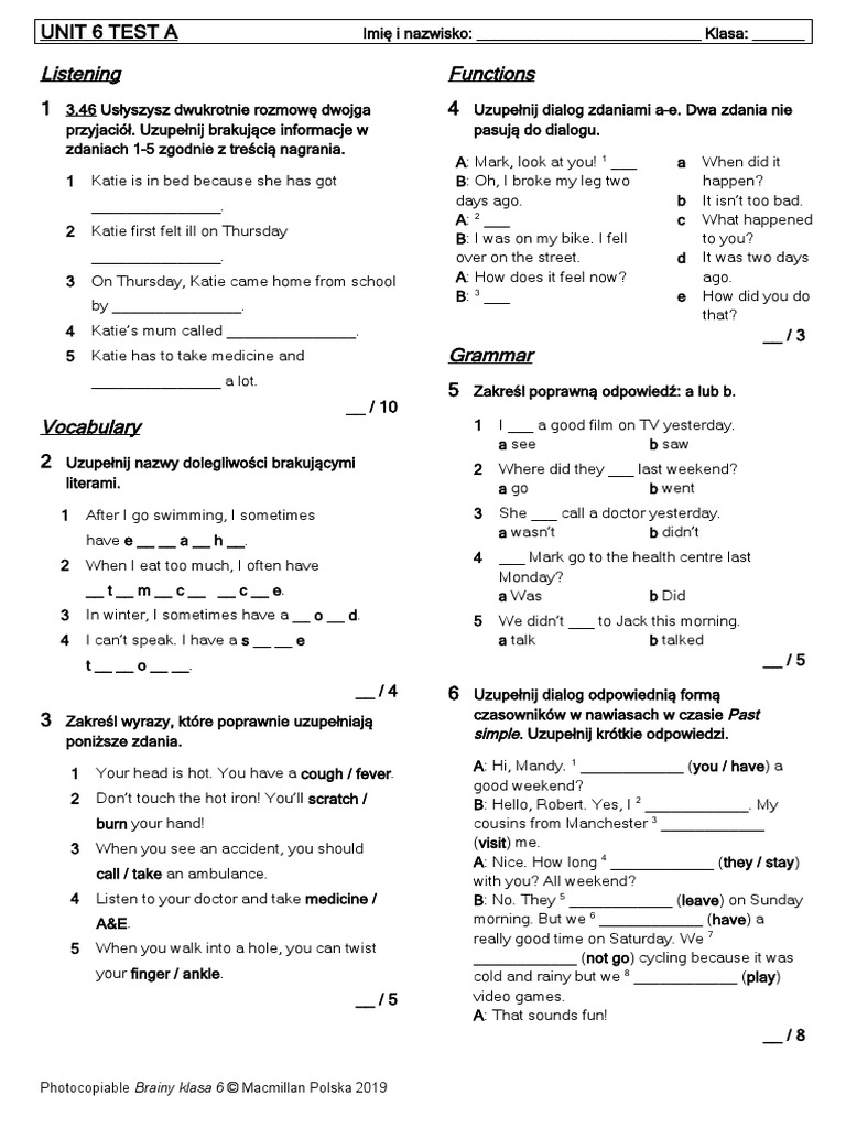 2 Uzupełnij nazwy dolegliwości brakującymi 2 Where did they ___ last weekend?