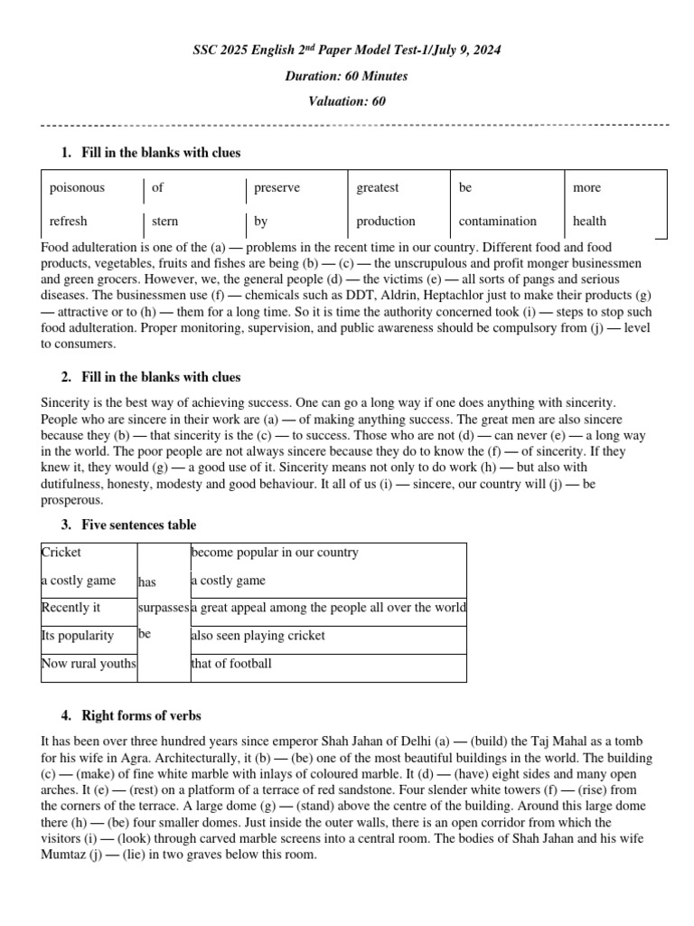 its slow motion. The hare asked the tortoise to run a race. (e) ---‘the tortoise felt hurt, It agreed to the proposal